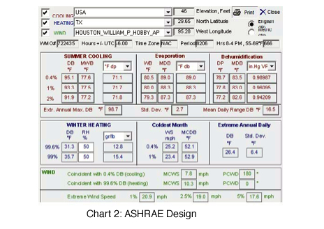 Chart 2 above shows ASHRAE design conditions for Houston's Hobby Airport. The peak ambient dew point for a dehumidification application shows 78.7 °F: any surface that is below that temperature will collect moisture as it acts as a condenser. Controlling the air dew point below that level is critical to avoiding moisture related corrosion.exposed surfaces.