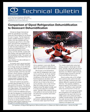 Comparison of Glycol Refrigeration Dehumidification to Desiccant Dehumidification CDI has specialized in providing desiccant dehumidifiers to ice arenas for over 25 years. The first desiccant system installed replaced a cold-coil system that was supplied with low temperature glycol from a rink chiller plant using ammonia refrigeration; a hot water coil was used to reheat the air after the dehumidification coil.