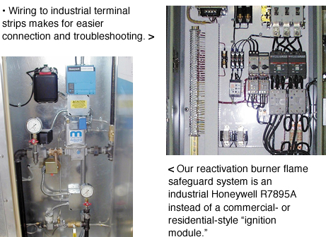 - The microprocessor reactivation controller maintains a constant burner-output temperature, so burning the desiccant rotor is unlike other manufactures. In addition, modulating via a reset schedule minimizes energy use. Full-rated performance is available in cool weather because it is not necessary to limit the firing rate as other manufacturers do.