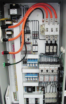 < Wiring to industrial terminal strips makes for easier connection and troubleshooting.